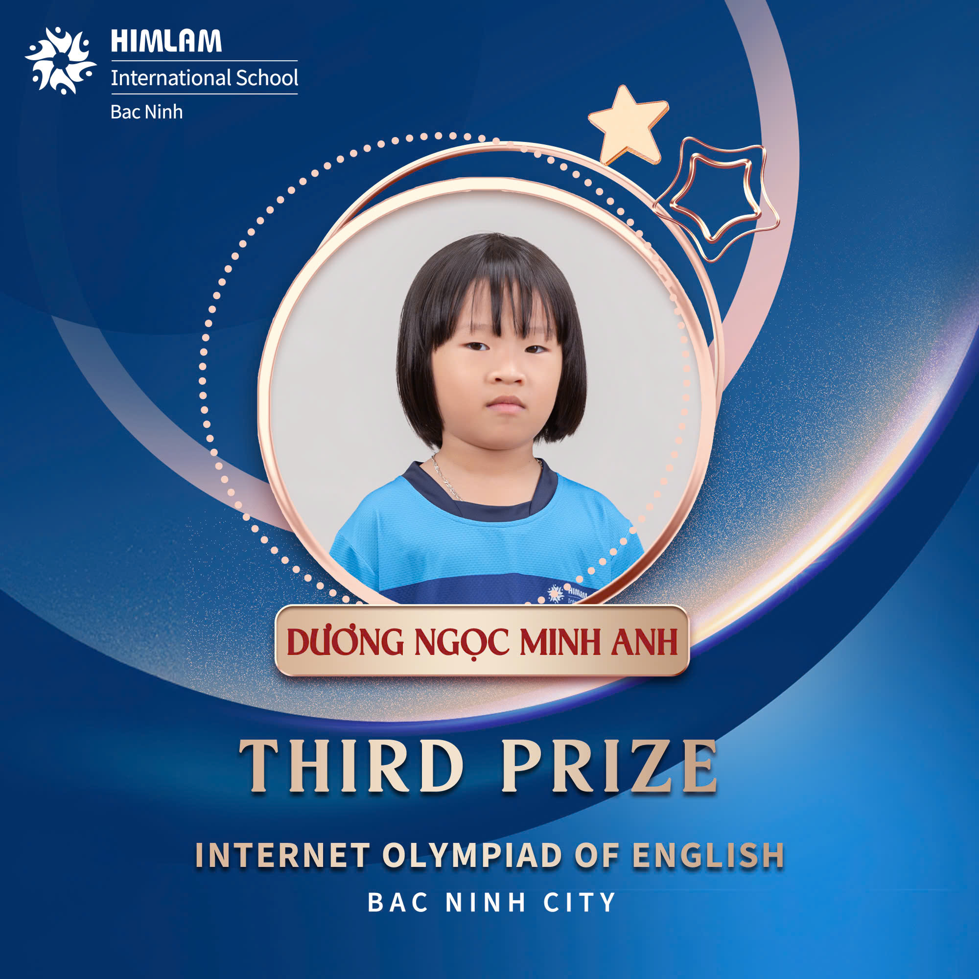 Trường Quốc tế Him Lam – Bắc Ninh tự hào chúc mừng các học sinh xuất sắc đã đạt thành tích ấn tượng trong cuộc thi Olympic Tiếng Anh trên Internet (IOE) cấp thành phố Bắc Ninh do Bộ Giáo dục & Đào tạo tổ chức.